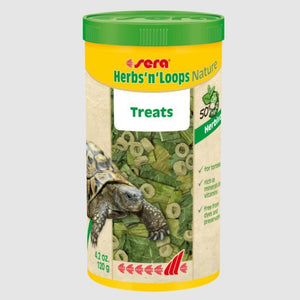 sera Herbs'n'Loops Nature is the treat without dyes and preservatives consisting of a blend of dried herbs (50%) and gently manufactured loops for tortoises and other herbivorous reptiles.