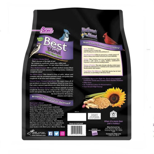 Brown’s® created Bird Lover’s Blend® for the experienced hobbyist and novice alike. This special blend is designed to attract the most desired birds in all regions during all seasons. We drew on the experience of six generations of the Brown’s® family to develop this product; we know it will bring the beauty of colorful songbirds to your backyard habitat and make the bird-feeding experience fun and rewarding for the whole family.