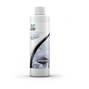 DIRECTIONS: Do not use in the aquarium. Use in a separate container. Remove 4 L (1 gallon) of water from the source aquarium to a container suitable for dipping. Add 5–10 mL (1–2 capfuls) of Reef Dip™ and mix. Place coral specimen in dip for 15–30 minutes, depending on severity of problem. In very severe cases, a double dose may be used. With clear and accessible lesions, dip concentrate may be painted on lesions directly before placing in dip. Observe animals during treatment for evidence of adverse reactions such as excessive sliming.