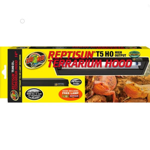 The 14 inch Zoo Med ReptiSun T5-HO Terrarium Hood is an affordable and incredibly effective light fixture designed for use in sensitive reptile terrariums. Its sleek, barely-there profile makes it an attractive and non-obtrusive addition to your custom reptile enclosure, allowing the focus to remain on the exotic and visually stunning inhabitants of your tank. The ReptiSun Hood features an energy-efficient T5-HO electronic ballast to guarantee rapid starts and maximum lamp performance and provides exceptional UVB, UVA and visible light for your reptilian friends. A highly polished curved reflector is also incorporated to significantly boost light and UVA/UVB output and the high output T5's are perfet for larger and taller enclosures to ensure essential UVB penetration is provided at greater depths. For convenient manual control, an on/off rocker switch is mounted on the rear of the hood. Alternatively, the ReptiSun T5-HO Terrarium Hood can be used with a light timer of your choice (sold separately).